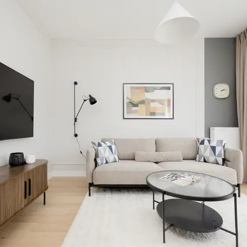 Ten apartament należy do ekskluzywnej kolekcji Renters Prestige. Dla najbardziej wymagających gości czekać będą liczne udogodnienia znane z pięciogwiazdkowych hoteli: zestaw kosmetyków premium, całodobowa infolinia ze statusem VIP, usługi concierge oraz inne.