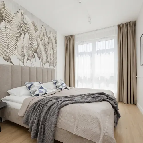 Te luksusowe apartamenty zostały urządzone z dbałością o funkcjonalność przestrzeni i jej stylowy wygląd. Jasne i eleganckie wnętrza sprawiają, że pomieszczenia wyglądają gustownie i nowocześnie. Lokale są przeznaczone dla czterech osób i dysponują balkonami z widokiem na okoliczną zieleń oraz budynki. W sypialni stoi wygodne, duże łóżko dwuosobowe, a także dwa stoliki, na których można trzymać podręczne drobiazgi. Umieszczono tu również pojemną szafę, w której można przechowywać ubrania czy też obuwie. W salonie znajduje się rozkładana sofa dwuosobowa, jadalniany stół z krzesłami, telewizor z dostępem do kanałów kablowych i stolik, przy którym można wypić poranną kawę lub zjeść przekąskę, oglądając wieczorami ulubione programy. Goście mogą łatwo i szybko przygotowywać posiłki w aneksie kuchennym, który został wyposażony w takie sprzęty jak kapsułkowy ekspres do kawy, kuchenka mikrofalowa i piekarnik. W łazience na odwiedzających czeka powitalny zestaw kosmetyków, pralka oraz suszarka do włosów i prysznic. Przytulne i jasne wnętrze sprawia, że jest to świetne miejsce dla tych, którzy lubią wielkomiejski gwar oraz chcą planować zróżnicowane aktywności.