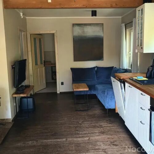 W salonie z aneksem kuchennym znajdą Państwo wszystko, co niezbędne do komfortowego pobytu: wygodną kanapę, kominek, telewizję satelitarną, Wi-Fi, lodówkę, zmywarkę, ekspres do kawy oraz piekarnik.