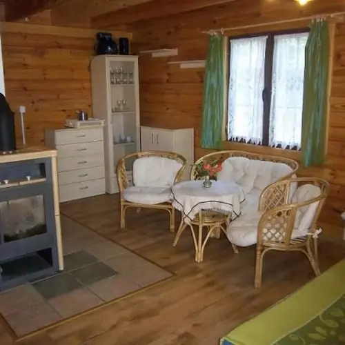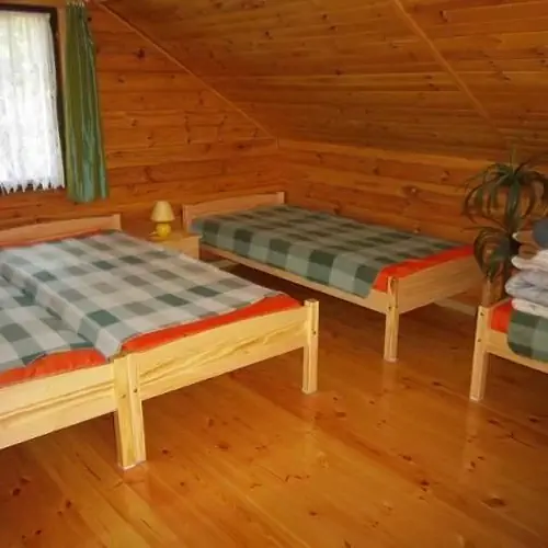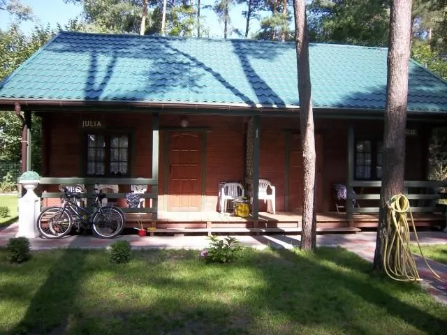 Domki letniskowe z drzewa kompletnie wyposażone,blisko jeziora na ogrodzonej na działce.