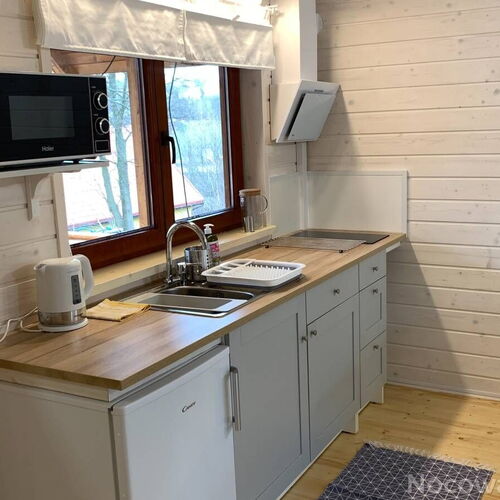 Domek drewniany 6-osobowy z dostępem do ogrodu z aneksem kuchennym (możliwa dostawka)