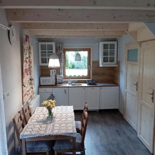 MILI GOŚCIE, PRZYJACIELE Serdecznie zapraszam na wypoczynek do nowego,drewnianego domku w Parku Krajobrazowym Gór Sowich. Domek zbudowany z drewnianych bali, w miejscu z pięknym widokiem na góry. Na parterze aneks kuchenny wyposażony w płytę ceramiczną, kuchenkę mikrofalową,zmywarkę,lodówkę,czajnik elektryczny,ekspres ciśnieniowy,opiekacz do grzanek,wszystkie naczynia i sztućce oraz naczynia potrzebne do samodzielnego przyrządzania posiłków. Miła kolorystyka wnętrza oraz ręcznie robione dodatki wprowadzają klimat ciepłego,wiejskiego domu. Miejsce jest przyjazne osobom,które najskuteczniej wypoczywają w ciszy,spokoju i bliskości z naturą. Niemniej okolica jest atrakcyjna turystycznie,więc i osoby aktywnie spędzające czas będą się tu dobrze odnajdywać.