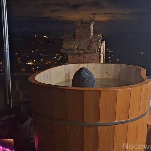 Na zewnątrz znajduje się balia drewniana do kąpieli.