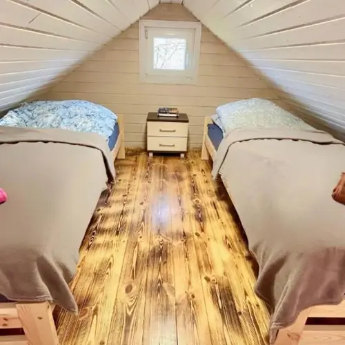 • Doskonała komunikacja: Przystanek autobusowy zaledwie 100 metrów od domku zapewnia łatwy dostęp do okolicy.