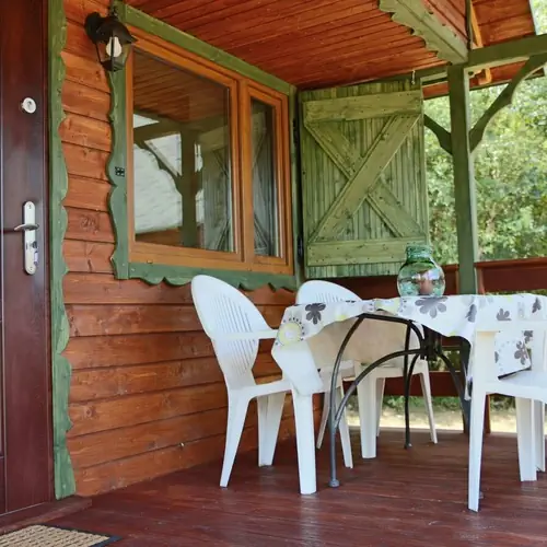 Domek myśliwski klimatyzowany przeznaczony dla czteroosobowej rodziny. Jest to otwarta przestrzeń z antresolą , domek wyposażony jest w aneks kuchenny (lodówka,czajnik,kuchenka gazowa) i łazienkę.Do spania sofa dwuosobowa i na anresoli spanie dla dwóch osób W domku znajduje się telewizor LCD.Domek ma własny taras ze stolikiem, parasolem,grillem oraz krzesłami. Z domku prowadzi wejście na molo z ,którego można latem wygodnie zażywać słońca i kąpieli.