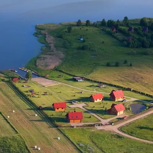 Dysponujemy 6 domami drewnianymi z bala, 2 większe o powierzchni użytkowej 115 m2 , 2 mniejsze o powierzchni użytkowej 56 m2 oraz 2 domy o pow. 86 m2. Domy są oddalone 100m od lini brzegowej jeziora. Teren jest ogrodzony. Na objekcie znajdują się: 2 pomosty, sprzęt pływający, pomieszczenia biesiadne z grilami kamiennymi, wędzarnia, plac zabaw, boisko do siatkówki i plaża. Na obiekcie jest też dość spory staw – zarybiony.