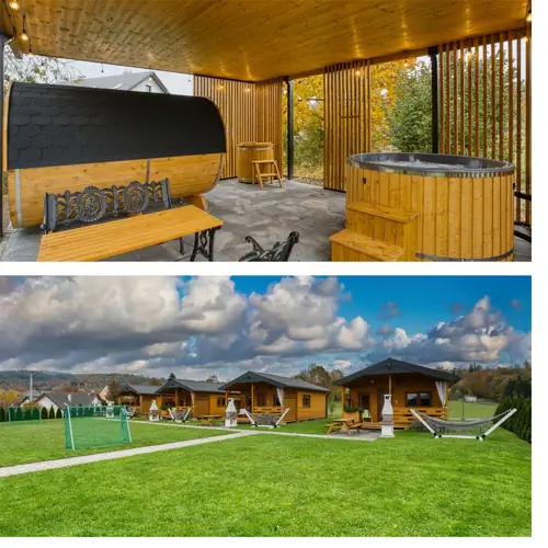 Domek drewniany 7-osobowy z łazienką z dostępem do ogrodu