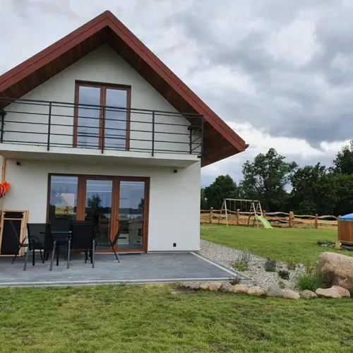 Na ogrodzonym terenie znajdują się dwa komfortowe domki, z częściowo wydzielonymi strefami, co zapewnia Gościom większą prywatność i swobodę wypoczynku. Atrakcje na miejscu: • prywatna plaża z pomostem i łodzią wiosłową (ok. 300 m od domków) • piaszczyste boisko do siatkówki • plac zabaw, trampolina • bezpłatny parking