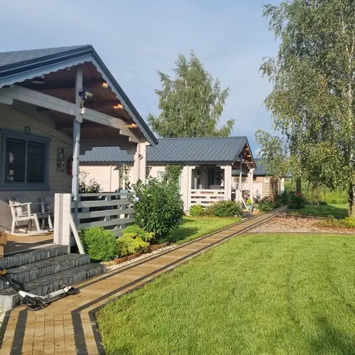 Na terenie dużej działki o pow. 2000 m2 oddajemy w Państwa ręce domki o pow. 54 m2 każdy, w których staraliśmy się zadbać o wiele detali i drobiazgi. W szczególności zadbaliśmy o komfort pobytu z dziećmi, dlatego udostępniamy plac zabaw, 2 domki drewniane z tablicami edukacyjnymi, sporo kącików wypoczynkowych z huśtawkami i ławeczkami, gdzie można się dobrze zrelaksować oraz jeździki i hulajnogi. Nie poprzestajemy na ciągłym udoskonalaniu naszego miejsca.