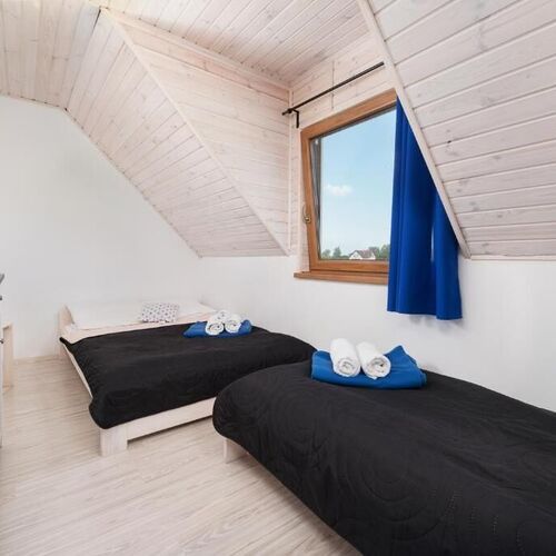 - parter (35 m2) : kuchnia w pełni wyposażona (lodówka, kuchenka indukcyjna i mikrofalowa, czajnik, ekspres do kawy, garnki i pełna zastawa), jadalnia, dwuosobowa rozkładana sofa, łazienka z prysznicem, telewizor, kominek