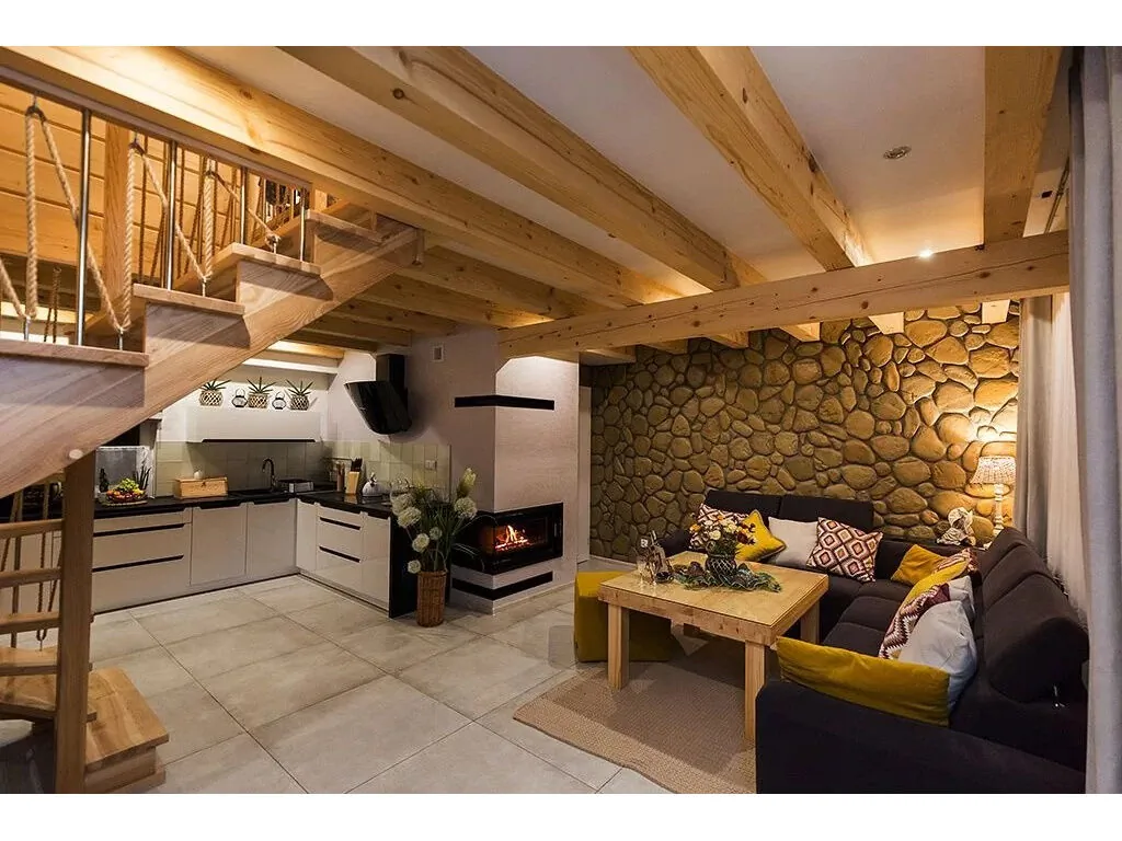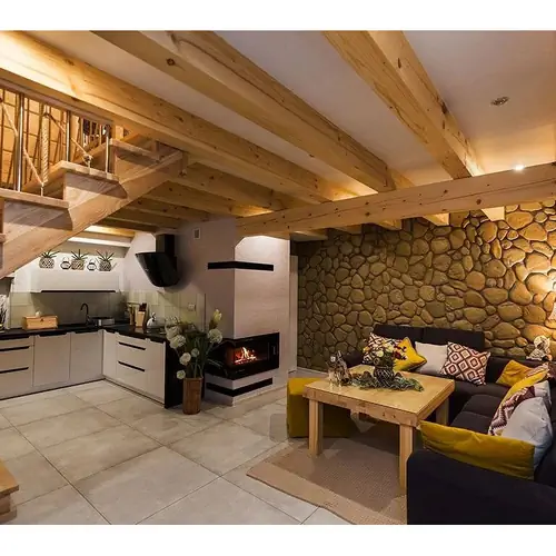 Domek przeznaczony jest dla 8–10 osób. Na piętrze znajdują się 3 niezależne sypialnie, oraz dodatkowa toaleta. Dwa pokoje posiadają wyjście na balkon z widokiem na góry.