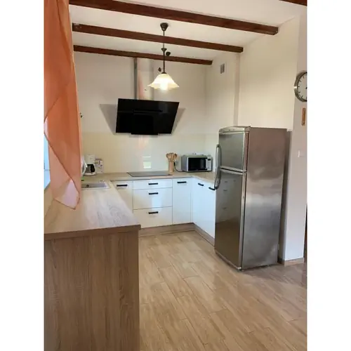 Na parterze znajduje się salon z kominkiem, aneks kuchenny oraz jadalnia i łazienka. Na piętrze 3 sypialnie - dwie dwuosobowe i jedna czteroosobowa oraz wc.
