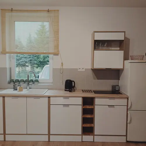 Nowe całoroczne nowoczesne domy z widokiem na Śnieżkę umożliwiają wypoczynek dla całej rodziny lub w gronie przyjaciół w komfortowych warunkach. Do dyspozycji naszych gości oddajemy 2 domy w każdym 2 sypialnie: pierwsza sypialnia z balkonem i widokiem na Śnieżkę posiada łóżko małżeńskie o rozmiarze King size, druga natomiast łóżko małżeńskie oraz rozkładaną sofę. W drugim domu układ jest ten sam. Ponadto w każdym z domów w części salonowej znajduje się kominek oraz duży wygodny narożnik z funkcją spania dla dwóch osób. W pełni wyposażone kuchnie ( ponadto suszarka do włosów, żelazko oraz deska do prasowania, ekspres do kawy). Domy otoczone są przestronną działką z widokiem na Karkonosze. Do dyspozycji Gości duża wiata ogrodowa, palenisko oraz grill. Okolica obfituje w różne atrakcje dla każdej grupy wiekowej.