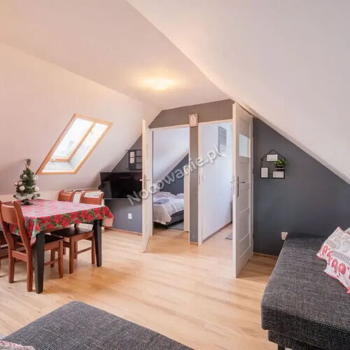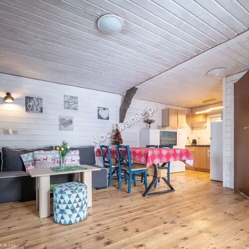 Jest jeszcze jeden mniejszy domek o powierzchni 25 m2 parterowy dla czterech osób. Domek posiada jedno pomieszczenie z aneksem kuchennym i łazienką. Do Państwa dyspozycji oddaliśmy niedawno dom 12-osobowy. Można oddzielnie wynająć jego górną oraz/lub dolną część. Obie części mają oddzielne wejście i posiadają 2 sypialnie z łóżkami podwójnym oraz salon z aneksem kuchennym oraz łazienkę.