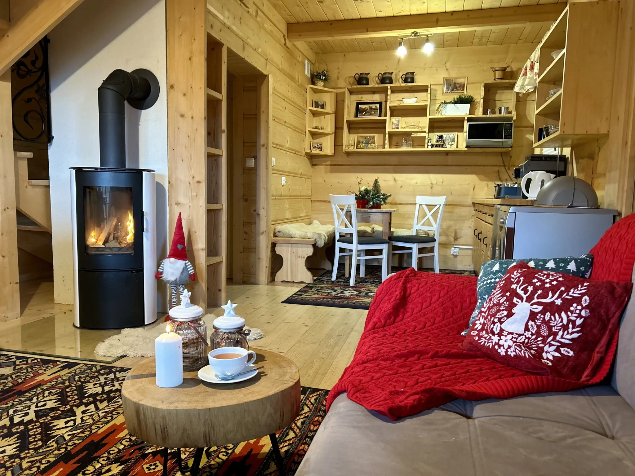 Domek Górski w Białce łączy w sobie tradycyjny styl góralski oraz nowoczesny. Domek jest dwupoziomowy i dysponuje sypialnią mieszczącą się na wyższym piętrze. Do dyspozycji Gości salon z kominkiem, kuchnia oraz 2 łazienki. Domki oferują również taras z widokiem na góry.