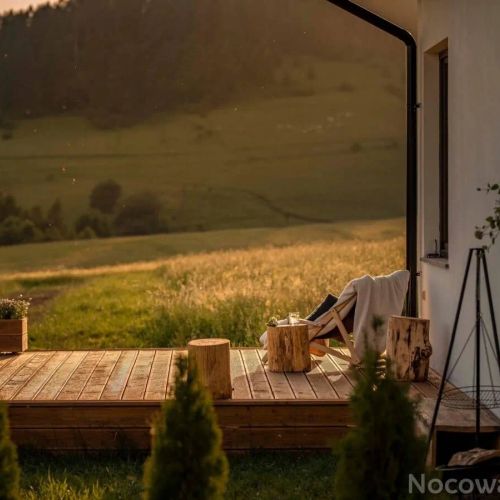 Domki w pełni wyposażone z pięknym tarasem widokowym, placem zabaw oraz miejscem na grilla.