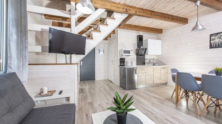Każda opcja zakwaterowania ma taras i wyposażona jest w telewizor z płaskim ekranem. We wszystkich opcjach znajduje się aneks kuchenny z pełnym wyposażeniem, w tym lodówką, jak również część wypoczynkowa z rozkładaną sofą oraz prywatna łazienka z prysznicem i suszarką do włosów. Wyposażenie obejmuje również zmywarkę, mikrofalówkę, płytę kuchenną, ekspres do kawy i czajnik.