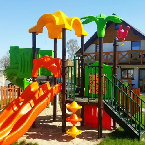 Do dyspozycji gości mamy 15 domków 4-9 osobowych. W każdym domku jest łazienka (prysznic, WC, szafka z umywalką, lustro) i aneks kuchenny (lodówka, kuchenka elektryczna, czajnik elektryczny, naczynia, garnki, sztućce). Na terenie obiektu jest również parking, plac zabaw dla dzieci oraz miejsce na grilla.