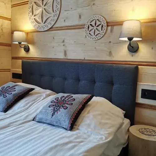 Do Państwa dyspozycji gotowych jest 5 komfortowych sypialni w hotelowym standardzie. W przestronnym salonie z narożnym wypoczynkiem, znajduje się nowoczesny TV 4K 65”, duży 12-osobowy góralski stół i panoramiczny kominek, który umili zimowe wieczory.