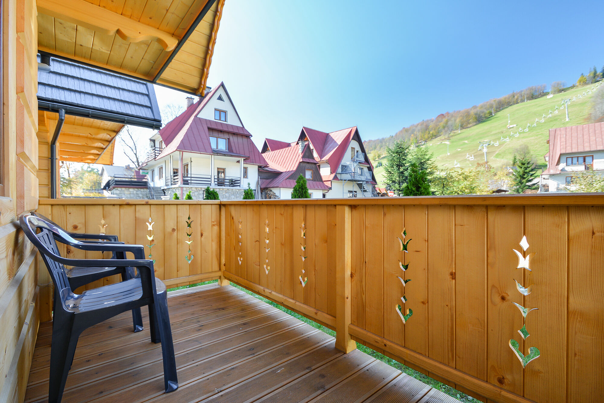 jest drewnianym dwukondygnacyjnym klimatyzowanym domem jednorodzinnym o powierzchni mieszkalnej ponad 80 m² i możliwości zakwaterowania do 9 osób. Do dyspozycji Państwa na parterze sypialnia/salon z łazienką i tarasem, obszerna i w pełni wyposażona kuchnia oraz zamykany przedsionek na narty, sanki itp. Na pierwszym piętrze dwa duże pokoje każdy z łazienką i balkonem. Pomieszczenia parteru są przystosowane dla osób poruszających się na wózkach inwalidzkich.