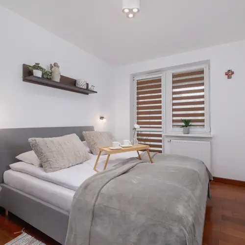 Ten urokliwy apartament o atrakcyjnej powierzchni mieszkalnej 58 m² jest idealnym wyborem dla rodzin lub grupy przyjaciół, ponieważ może pomieścić 5 osób. Apartament składa się z przytulnego salonu z rozkładaną sofą, aneksu kuchennego, 2 oddzielnych sypialni oraz łazienki z prysznicem i wanną. Jedna z sypialni jest wyposażona w łóżko małżeńskie oraz wyjście na balkon, natomiast druga sypialnia posiada rozkładaną sofę i wygodne biurko do pracy lub nauki. Wyposażenie multimedialne obejmuje telewizor z płaskim ekranem i funkcją SmartTV oraz bezpłatną sieć Wi-Fi. Apartament utrzymany jest w stylowym i eleganckim wystroju, dominuje tutaj głównie jasna kolorystyka. Pełne wyposażenie wnętrza w niezbędne akcesoria i sprzęty kuchenne oraz łazienkowe nie tylko zapewnia maksymalny komfort pobytu, ale także umożliwia relaks po intensywnym dniu pełnym wrażeń. Na dobry początek pobytu zapewniamy naszym gościom bezpłatny zestaw kosmetyków, ręczniki oraz pościel. Zapraszamy również gości podróżujących ze zwierzętami, ponieważ jest to apartament przyjazny pupilom.