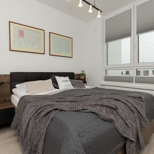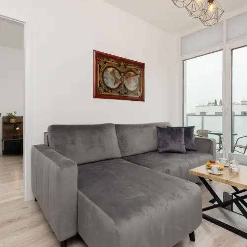W pełni wyposażony apartament może wygodnie pomieścić do 6 osób- jest idealny zarówno na weekendowe wypady, jak i dłuższe pobyty. Apartament składa się z salonu z aneksem kuchennym i balkonem, 2 sypialni, garderoby oraz 2 łazienek. Wnętrze ma ciepłą, domową atmosferę. Wystrój opiera się na stonowanych kolorach współgrających z drewnianymi elementami. Pełen zakres udogodnień, w tym pełne wyposażenie kuchenne i łazienkowe, gwarantuje wysoki komfort każdego pobytu. Dwie łazienki zapewniają dostęp zarówno do wanny jak i do prysznica, co pozwoli usatysfakcjonować każdego z gości. W mieszkaniu dostępny jest również przenośny klimatyzator dbający o komfortową temperaturę otoczenia. Multimedia obejmują telewizor z płaskim ekranem oraz bezpłatny bezprzewodowy dostęp do Internetu. Na dobry początek każdego pobytu zapewniony jest bezpłatny zestaw kosmetyków, pościel i ręczniki. Goście podróżujący samochodem mogą zaparkować w podziemnym garażu w cenie rezerwacji.