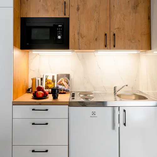 Żelazko, bezpłatna kawa i herbata czy pachnąca świeża pościel... mamy wszystko, czego potrzebują nasi Goście, aby cieszyć się przyjemnym pobytem w naszym klimatyzowanym Apartamencie przeznaczonym maksymalnie dla dwóch osób.
