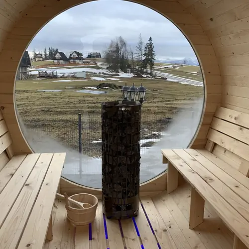 Do Państwa dyspozycji jest też nowoczesna sauna fińska z przeszklonym frontem który, tak jak każda część tego obiektu, zapewnia majestatyczny widok na góry.