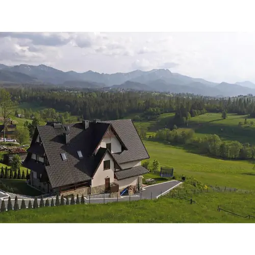 Kameralny obiekt z przepięknym widokiem na Tatry, duży parking, zwierzęta mile widziane, duża i przestronna sala kominkowa, ogólno dostępna kuchnia, bezpłatne wi-fi, tv czajnik lodówka balkon z widokiem na góry w każdym pokoju