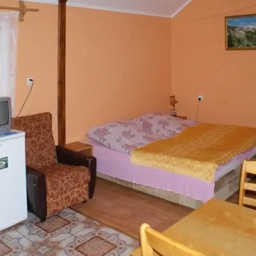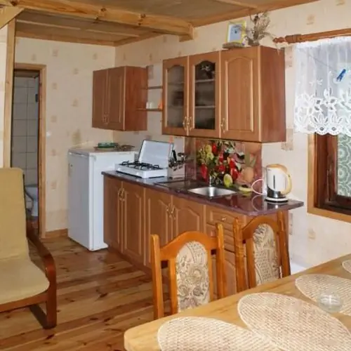 Dysponujemy domkami cztero i dwuosobowymi. Każdy domek wyposażony jest w aneks kuchenny z niezbędnymi naczyniami do przygotowywania posiłków. W domku ponadto znajduje się łazienka z ciepłą wodą, a także tv.