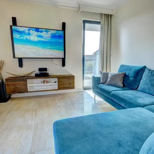 Apartament 202 szczególnie polecamy na pobyty wakacyjne z dziećmi. Basen na dachu budynku zapewni szybkie orzeźwienie w czasie upałów oraz dostarczy dużo wrażeń dla najmłodszych. Natomiast rodzice w ciepłe wieczory leżąc na leżaku docenią widok na latarnię morską, Zatokę Gdańską oraz panoramę trójmiasta.