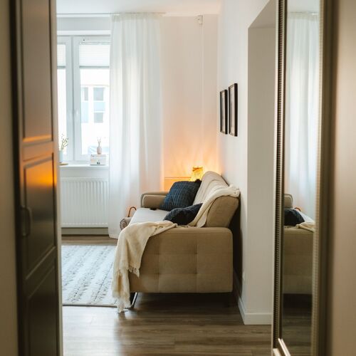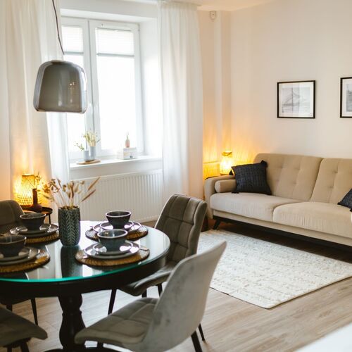 Zapraszamy do spędzenia niezapomnianych wakacji w komfortowym i urządzonym ze smakiem apartamencie. Nasz apartament znajduje się na osiedlu, które zachwyca przestrzenią oraz bujnymi terenami zielonymi,. To doskonałe warunki do wypoczynku. Możesz spacerować pobliskim lasem, cieszyć się świeżym powietrzem i delektować pięknem otaczającej przyrody. To raj dla miłośników aktywnego wypoczynku – w okolicy znajdziesz wiele tras rowerowych oraz możliwości uprawiania sportów wodnych w lecie. Przytulne wnętrze apartamentu zapewni Ci komfort i relaks po intensywnym dniu spędzonym na plaży lub zwiedzaniu okolicy. Sam budynek, w którym znajduje się nasz apartament, wyróżnia się nietuzinkową architekturą, a wysokie sufity nadają wnętrzom przestronności i elegancji.