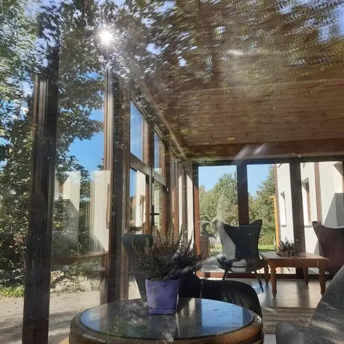 Doskonałe położenie bezpośrednio nad jeziorem na Mazurach Zachodnich, co gwarantuje wypoczynek na łonie natury o każdej porze roku. Za oknami pensjonatu malowniczy krajobraz, surowe piekno jezior, majestatyczne drzewa strzelające pąkami w promieniach wiosennego słońca, radosny śpiew ptaków i błogi spokój dookoła. Latem...cieplejszy wieje wiatr....Jesień...wita Was paletą barw..Urozmaicone posiłki to kulinarne podróże dookoła świata pod hasłem: Zielono mi...zioła, sałaty, trawy i potrawy z czterech stron świata. A także dania dla dzieci, fit, wege- oraz na życzenie dania dla osób na diecie.