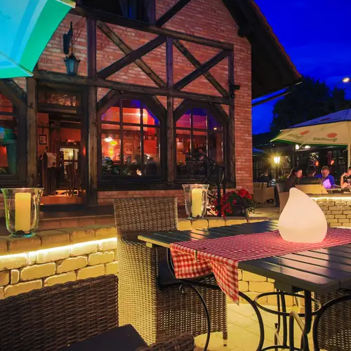 Hotel położony jest nieopodal Rynku w Oświęcimiu. Dogodny dojazd z każdego kierunku, ok. 4 km od Muzeum KL Auschwitz - Birkenau. Pomimo tego, iż znajduje się w pobliżu centrum miasta, jest miejscem utrzymanym w wyjątkowym klimacie. Posiada ogródek letni na 110 miejsc siedzących oraz kominek plenerowy – zadaszoną altanę z 3 paleniskami dla 100 osób.
