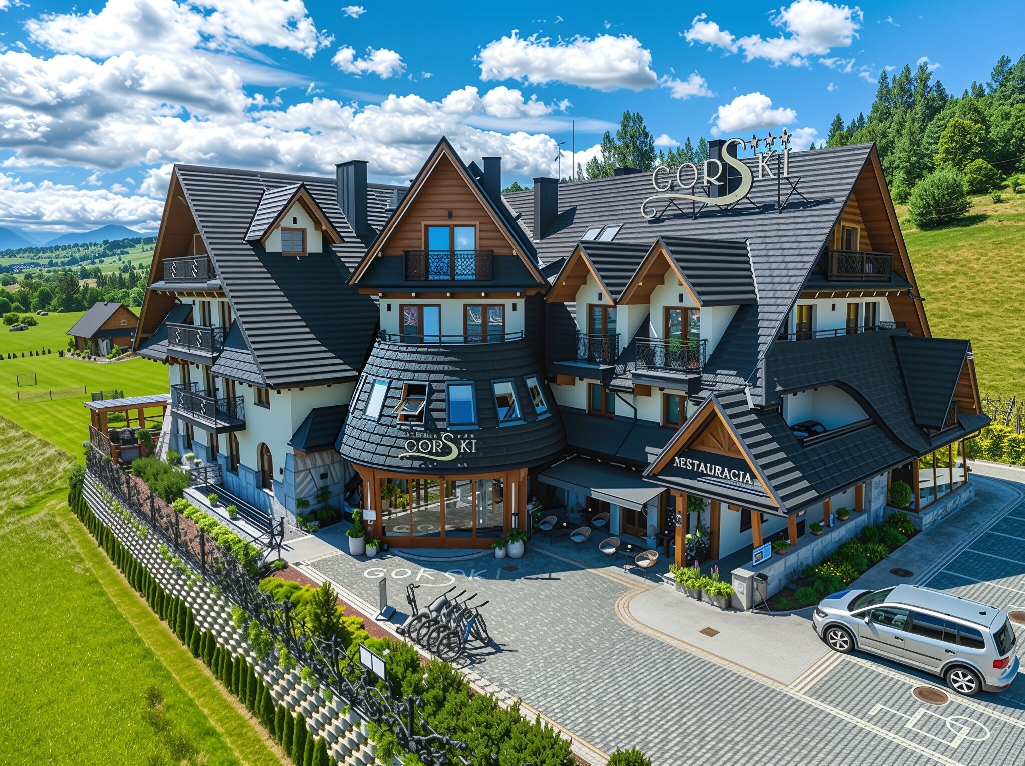 Hotel Górski to stylowy hotel usytuowany przy ulicy Środkowej 182 K w malowniczej miejscowości Białka Tatrzańska, zaledwie kilka kroków od popularnych term i stoków narciarskich. Obiekt łączy góralski klimat z nowoczesnym komfortem — naturalne materiały, drewniane detale oraz widok na tatry tworzą wyjątkową atmosferę.