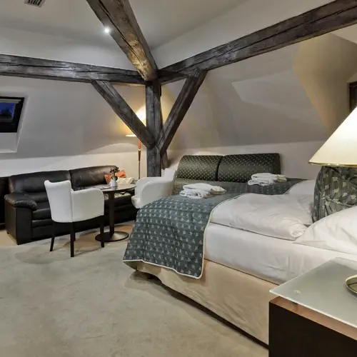 Pokoje, usługi 30 komfortowo urządzone pokoje znajdują sie w ofercie HOTEL GRAND Český Krumlov dla gości poszukujących noclegu w Český Krumlov. Możesz zabrać ze sobą swojego czteronożnego przyjaciela, HOTEL GRAND Český Krumlov również zezwala na pobyt małych zwierząt za dodatkową opłatą. Każdego dnia możesz próbować pysznych i świeżych posiłków w restauracji hotel. Nie musisz się martwić ciepłem, klimatyzacja, która jest dostępna w niektórych pokojach, zapewni Ci miły nastrój nawet podczas najgorętszych letnich dni (prosimy sprawdź arkusz informacyjny pokoju aby upewnić się czy klimatyzacja jest częścią wyposażenia). Jeżeli chcesz sie dowiedzieć więcej nt. dokładnego zakresu dostępnych usług HOTEL GRAND Český Krumlov (również wszystkie dostępne za dodatkową opłatą) lub odnośnie wyposażenia pokojów, możesz znaleźć kompletną listę w informatorze poniżej i w informatorze konkretnego pokoju.