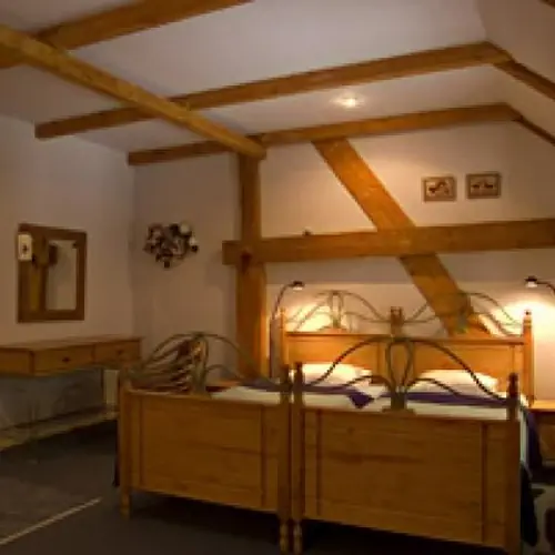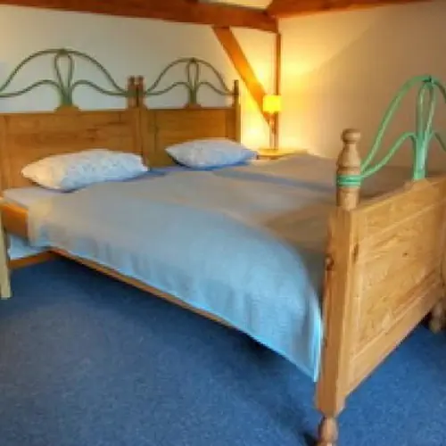 Pokoje w Dworku i Starej Stajni dzięki nietypowym wnętrzom starych zabudowań stały się niepowtarzalne i sympatyczne, co sprawia, że nasi goście czują się tutaj dobrze. Dysponujemy także pokojami usytuowanymi w dwu piętrowym pawilonie położonym tuż nad jeziorem.