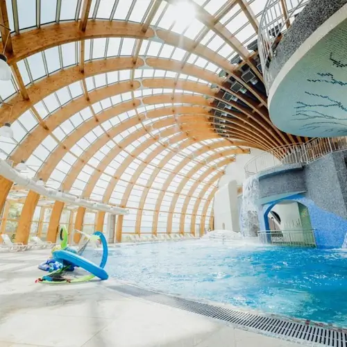 Najpiękniejszy park wodny w Karkonoszach, gdzie można się bawić, relaksować i odprężyć, podziwiając widoki na Śnieżkę, Chojnik lub Szrenicę. Park oferuje dwie poziomy wodnych atrakcji oraz strefę relaksu pod w pełni przeszkloną kopułą. Niezależnie od tego, czy świeci słońce, czy mgła osiada na szczytach gór, gwarantujemy doskonały widok.