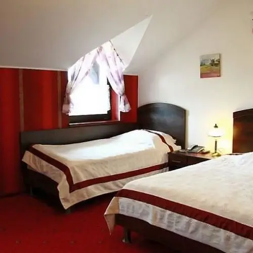 Do Państwa dyspozycji oddajemy 13 pokoi gościnnych 2- i 3-osobowych. W każdym pokoju znajduje się garderoba, łazienka z prysznicem, TV SAT, telefon, dostęp do Internetu i klimatyzacja. Komfortowo wyposażone pokoje stwarzają wymarzone warunki zarówno do pracy, jak i do odpoczynku. Łóżka mogą być w układzie pojedynczym lub małżeńskim.