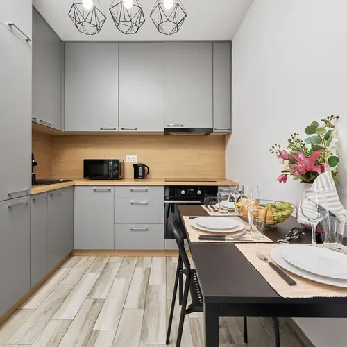 Ten stylowy apartament składa się z salonu z aneksem kuchennym, sypialni oraz łazienki z prysznicem. Może pomieścić 4 osoby. Piękny wystrój tworzy elegancką i przytulną atmosferę. W sypialni znajduje się bardzo wygodne łóżko małżeńskie. Pokój dzienny wyposażony jest w dwuosobową rozkładaną sofę i jest świetnym miejscem do wypoczynku, zwłaszcza po długim dniu zwiedzania słynnych atrakcji Wrocławia. Apartament posiada również balkon z meblami ogrodowymi - idealny na poranną filiżankę herbaty lub kawy na świeżym powietrzu. Dodatkowo aneks kuchenny wyposażony jest w wysokiej jakości sprzęt AGD, który pozwoli Ci na przygotowanie ulubionych posiłków. Jest tu piekarnik, lodówka, czajnik oraz płyta indukcyjna. Łazienka jest również w pełni wyposażona we wszystkie niezbędne rzeczy, takie jak pralka, co zapewni najbardziej komfortowy pobyt wszystkich gości. Dla ułatwienia rozpoczęcia każdego pobytu zapewniono bezpłatny zestaw kosmetyków, ręczniki oraz pościel.