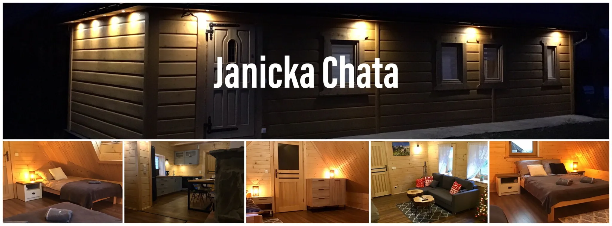 "Janicka Chata" to nowy, dwupoziomowy budynek. Na parterze znajduje się kuchnia (pełne wyposażenie - dod. zmywarka, piekarnik, mikrofala oraz chłodziarko-zamrażalka) wraz z jadalnią, salon z rozkładaną sofą, telewizorem i kominkiem oraz łazienka z prysznicem (dod. pralka oraz suszarka do włosów). Na piętrze znajdują się dwie sypialnie trzyosobowe oraz toaleta.