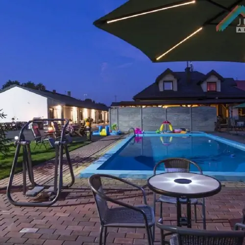 Na upalne dni polecamy odpoczynek przy basenie kąpielowym o rozmiarach 5x10 metrów, a dzieci zapewne docenią brodzik oraz plac zabaw. Udostępniamy również chatę grillową oraz dużą altanę idealną na biesiadne wieczory, a także bezpłatny parking.Posiadamy również wypożyczalnie rowerów i desek elektrycznych .