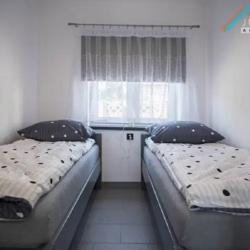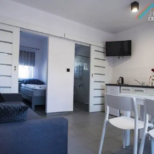 Posiadamy 10 apartamentów 4 osobowych, każdy z nich wyposażony jest w odbiornik TV, łazienkę, aneks kuchenny, lodówkę oraz kuchenkę mikrofalową. Można korzystać z sieci WiFi dostępnej na terenie całego kompleksu. Apartamenty są dostępne przez cały rok.