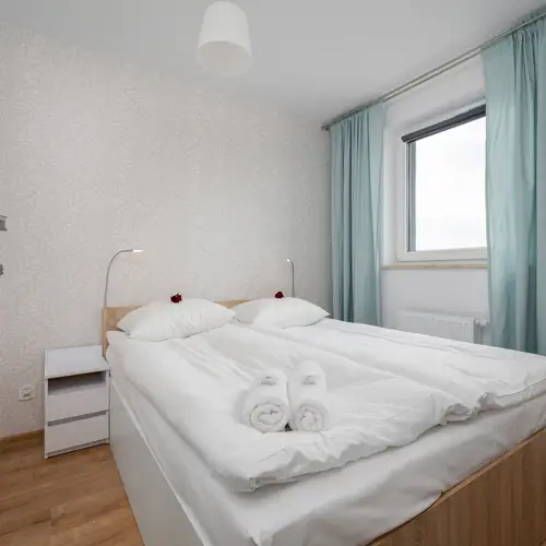 Apartament posiada jedną osobną sypialnię z podwójnym łóżkiem i wygodną rozkładaną kanapę w salonie, co zapewnia komfortowy pobyt aż czterem osobom. Dodatkowo do apartamentu przynależy słoneczny balkon, co umożliwia delektowanie się poranną kawą w towarzystwie pięknego widoku wrocławskiej panoramy czy odpoczynek po dniu pełnym wrażeń. Stonowana kolorystyka i stylowe wykończenie sprawia, że apartament będzie idealną przestrzenią do odprężenia i relaksu. Kuchnia wyposażona jest we wszystkie niezbędne sprzęty kuchenne, które umożliwiają przyrządzanie smacznych, domowych posiłków. Mieszkanie wyposażone jest w podstawowe udogodnienia, takie jak żelazko, deska do prasowania, odkurzacz i suszarka do włosów.