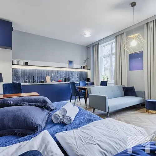 Zapraszamy Państwa do naszego stylowego apartamentu Kolorova Indigo by LookAp zlokalizowanego w samym centrum Łodzi – w odrestaurowanej kamienicy na ulicy Gdańskiej. Apartament typu studio o powierzchni 33 m2 jest w pełni wyposażony i przygotowany do komfortowego pobytu 4 osób. Posiada TV, internet WiFi oraz w pełni wyposażoną kuchnię i łazienkę. Znajdą w nim państwo również szerokie łóżko małżeńskie (160 x 200 cm) oraz rozkładaną sofę a także ręczniki i świeżą pościel.