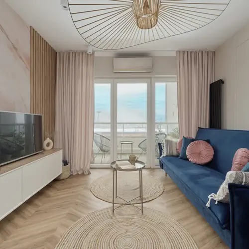 Ten piękny, klimatyzowany apartament o powierzchni prawie 42 m² ma możliwość zakwaterowania do 4 osób - to świetny wybór na wyjazd dla rodziny lub grupy przyjaciół! Przestrzeń apartamentu oferuje salon z aneksem kuchennym, sypialnię oraz łazienkę z prysznicem. Część dzienna wyposażona w rozkładaną sofę oraz TV stanowi doskonałe miejsce odpoczynku i relaksu. Dodatkowo, do dyspozycji gości jest także balkon z meblami ogrodowymi, gdzie można delektować się poranną kawą, czy odpocząć po całym dniu zwiedzania. Elegancka sypialnia posiada wygodne podwójne łóżko i toaletkę z lustrem, które może posłużyć też jako biurko, dzięki czemu goście pracujący zdalnie będą mogli w komfortowy sposób zadbać o obowiązki służbowe. W całym obiekcie dostępne jest także szybkie bezpłatne łącze Wifi. W pełni wyposażony aneks kuchenny umożliwia przyrządzenie ulubionych posiłków. Funkcjonalny układ pomieszczeń oraz kompleksowe wyposażenie w niezbędne akcesoria kuchenne i łazienkowe gwarantują komfort pobytu. Dla ułatwienia rozpoczęcia każdej wizyty zapewniono bezpłatny zestaw kosmetyków (mydło, szampon i żel pod prysznic), ręczniki oraz pościel. Na wyposażeniu apartamentu goście znajdą również pralkę i suszarkę, co z pewnością docenią rodziny z małymi dziećmi czy osoby planujące dłuższy pobyt. Apartament ma nieodparty urok, dzięki luksusowemu wystrojowi i wysokiej jakości materiałów. Całość wnętrza przykuwa uwagę swoim harmonijnym, nowoczesnym stylem.