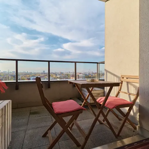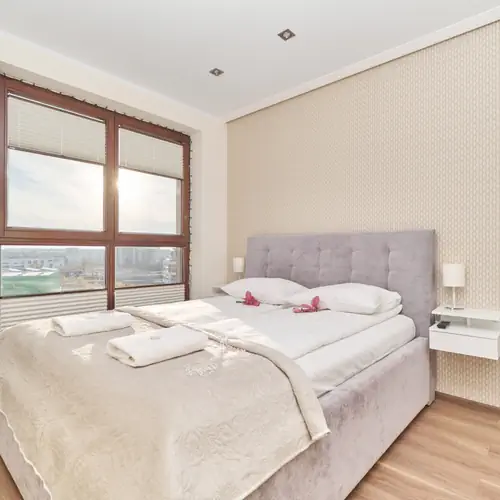 Wygodny apartament z dwiema sypialniami i balkonem doskonale sprawdzi się dla 3 lub 5-cio osobowych rodzin albo grupy przyjaciół. Goście będą mieli do dyspozycji słoneczny salon z rozkładaną sofą i telewizorem, sypialnię z podwójnym łóżkiem i jeszcze jednym telewizorem, sypialnię z pojedynczą rozkładaną sofą, w pełni wyposażoną kuchnię oraz łazienkę z wanną. Jest również balkon z meblami ogrodowymi, gdzie można delektować się poranną kawą. Mieszkanie wyposażone jest w podstawowe udogodnienia takie jak żelazko, deskę do prasowania, odkurzacz i suszarkę do włosów. Kuchnia wyposażona jest we wszystkie niezbędne sprzęty kuchenne. Znajdziesz tam płytę indukcyjną, piekarnik, mikrofalówkę, lodówkę, czajnik elektryczny, ekspres do kawy, zmywarkę oraz podstawowe przybory kuchenne, kubki, naczynia i sztućce. W łazience znajduje się wysokiej jakości wyposażenie, takie jak pralka, czy suszarka bębnowa. Goście mogą również korzystać z szybkiego Wi-Fi i 2-ch telewizorów.