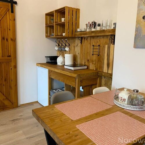 W obiekcie znajduje się oddzielna w pełni wyposażona kuchnia do wyłącznej dyspozycji gości (lodówka, zlew, płytę elektryczną, naczynia, ekspres do kawy, toster, mikrofalówka itp.).