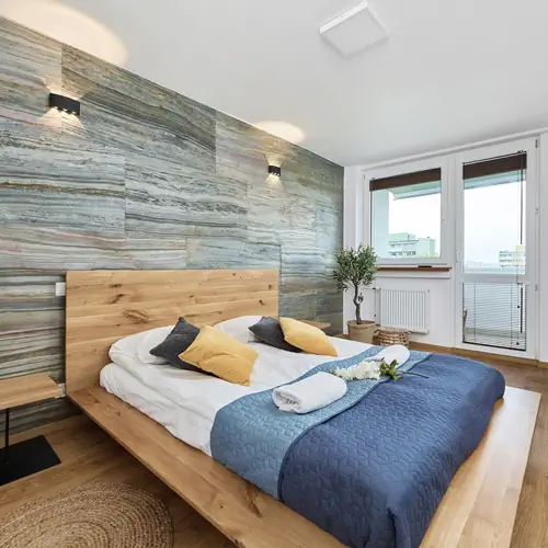 Ten apartament z 2 sypialniami będzie idealnym rozwiązaniem dla 4 osób. Mieszkanie składa się z salonu z aneksem kuchennym, dwóch sypialni oraz łazienki z prysznicem i osobnej toalety. Apartament posiada również balkon z meblami ogrodowymi, gdzie można delektować się poranną kawą. Sypialnie posiadają wygodne miejsce do spania, w jednej łóżko małżeńskie, w drugiej rozkładana sofa. Część dzienna wyposażona w sofę oraz telewizor z płaskim ekranem stanowi doskonałe miejsce odpoczynku i relaksu. Niewątpliwym atutem jest szybki Internet Wifi w całym obiekcie i biurko do pracy lub nauki w jednym z pokoi. Funkcjonalny układ pomieszczeń oraz kompleksowe wyposażenie w niezbędne akcesoria kuchenne i łazienkowe gwarantują komfort pobytu. Goście mogą skorzystać z powitalnego zestawu kosmetyków (mydło, szampon i żel pod prysznic), ręczników i szerokiej gamy artykułów gospodarstwa domowego, takich jak żelazko, odkurzacz czy pralka. W pełni wyposażony, gustowny apartament wyróżnia się nowoczesnym wystrojem i starannym wykończeniem. Wnętrze stylowo urządzone ze ścianą z cegieł, drewnianymi elementami i podłogami, sprawia, że panuje tutaj ciepły, domowy klimat. Obiekt nie posiada przypisanego miejsca postojowego, ale można zaparkować samochód w miarę możliwych wolnych miejsc przy budynku, bezpłatnie (nie ma jednak gwarancji miejsca).