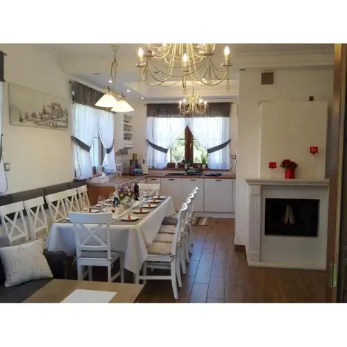 Serdecznie Państwa zapraszamy do magicznego miejsca. Oferujemy państwu w pełni wyposażony dom do miłego i beztroskiego spędzenia czasu w zacisznym miejscu z dala od zgiełku miasta. Do dyspozycji państwa są: kuchnia wyposażona w zmywarkę, lodówkę, piekarnik, kuchenkę mikrofalową, toster, ekspres do kawy. Kawa i herbata, cukier, przyprawy są na wyposażeniu standardowym . Sztućce, szklanki, kieliszki różnego rodzaju, talerze, garnki itp w standardzie. 2 łazienki z prysznicami oraz wanna obszerna do miłego wypoczynku, ręczniki, szampony, płyny do kąpieli to standard. Sauna infrared, promienniki kwarcowe , szlafroki, ręczniki olejki zapachowe - chwila relaksu.